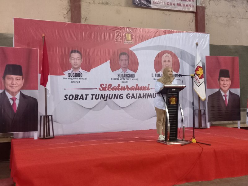 Teras Merdeka – Wakil Sekretaris DPD Partai Gerindra Jawa Tengah Dyah Tunjung Pudyawati mengumpulkan ratusan relawannya yang bernama Relawan Sobat Tunjung di Wisma Pemda Jateng, Jalan Papandayan, Gajahmungkur, Kota Semarang, Minggu (11/6/2023).