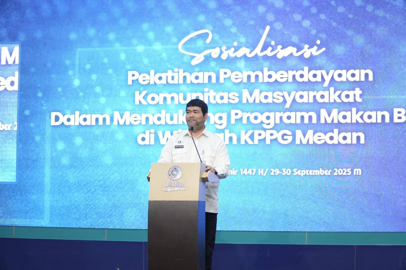 Teras Merdeka – Badan Gizi Nasional (BGN) meggelar Sosialisasi dan Pelatihan Pemberdayaan Masyarakat di Universitas Muhammadiyah Sumatera Utara yang berfokus pada dukungan UMKM terhadap Program Makan Bergizi Gratis (MBG).